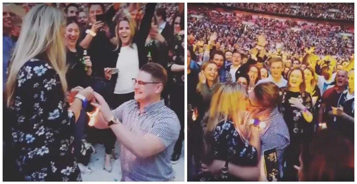 Ennesima proposta di matrimonio durante un concerto dei Coldplay. Come già accaduto a Nizza, ieri sera allo stadio di Wembley di Londra un ragazzo ha fatta alla sua amata la fatidica domanda “mi vuoi sposare?” nel bel mezzo del concerto della loro band preferita. Il sì della ragazza, visibilmente commossa ed emozionata, è stato accolto con urla e applausi dai vari fan che hanno assistito alla scena. Chissà se Chris Martin & company, intenti a suonare la dolcissima “Fix you”, si sono accorti del romantico evento!