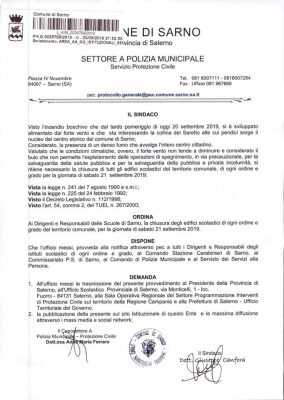 La casa comunale è un grande centro di gestione dell’emergenza.Ci sono diversi fronti sui quali si sta operando con mezzi e centinaia di uomini e donne. Alle ore 5 è previsto l’intervento degli elicotteri. Al buio non possono operare. Sono arrivate altre squadre. Tra poco ci sarà una ulteriore organizzazione per arrivare nelle aree interessate dall’incendio. Le fiamme in questo momento sono controllate. La speranza è che non si alzi nuovamente il vento. È chiaramente un disegno doloso.Mentre si operava in zona Saretto sono stati segnalati altri roghi a Episcopio e Foce.In queste ultime due zone è rientrata l’emergenza.L’evacuazione è una operazione prudenziale. Bisogna agevolare e non intralciate i mezzi sostando in strada. Evitare telefonate alle forze dell’ordine se non strettamente necessarie, non affollare le linee che stanno già avendo problemi. Stanno arrivando ora ancora altri volontari che si dedicheranno all’assistenza della popolazione . Sabato con scuole chiuse, annullate tutte le manifestazioni culturali previste per domani presso il Museo Archeologico Nazionale Valle del Sarno.