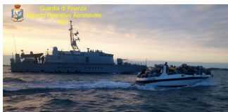Un sequestro da record di stupefacenti è stato messo a segno oggi dalla Guardia di Finanza, nel corso di un pattugliamento nelle acque del basso Adriatico. Le lance delle Fiamme Gialle hanno intercettato un’imbarcazione che viaggiava verso le coste pugliesi. All’alba di oggi, a circa 11 miglia al largo di Brindisi, l’equipaggio di un pattugliatore veloce della Finanza localizzava il motoscafo segnalato, bloccato a poche miglia dalla costa da una vedetta veloce open.