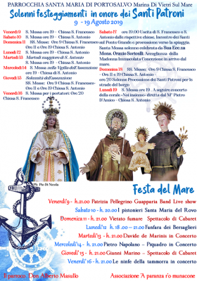 Dal 9 al 19 agosto a Marina di Vietri sul Mare si terranno i festeggiamenti in onore dei Santi Patroni S. Antonio di Padova e S. Francesco di Paola.