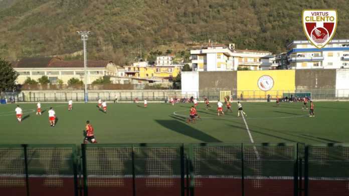 Nella ripresa parte forte la squadra di mister Castiello che all’ottavo va subito vicina al vantaggio con Maiese ma il suo piattone si spegne di poco sul fondo. Sono le prove generali del gol che arriva cinque minuti più tardi con Cammarota che dalla distanza batte Rescigno con tiro sul palo più lontano. Potrebbe essere la svolta della gara ma invece al ventiduesimo è la Rocchese a sfiorare il nuovo vantaggio. Doppia chance prima per Malandrino e poi per Thongo ma in entrambi i casi non arriva la difesa virtussina non si piega ai tentativi ravvicinati dei padroni di casa. Si rifanno vedere a questo punto i granata prima con il neo entrato Guido Esposito, che spedisce di destro a fin di palo, e poi con Sene, ma il colpo di testa del numero dieci è troppo debole per impensierire Rescigno. Scampato il pericolo a tre minuti dal novantesimo arriva il nuovo vantaggio Rocchese. È ancora Schiavi a superare Tesoniero: l’attaccante raccoglie a centro area una seconda palla messa dentro da Allegretti salito dalla difesa su sviluppi di calcio piazzato. Di nuovo in vantaggio i padroni di casa giocano con il cronometro cercando di rallentare più e più volte il gioco e proprio da queste sospensioni arriva un aggiuntivo minuto di recupero nel quale la Virtus trova il definitivo pareggio con Giovanni Monzo anche lui entrato nella ripresa.
