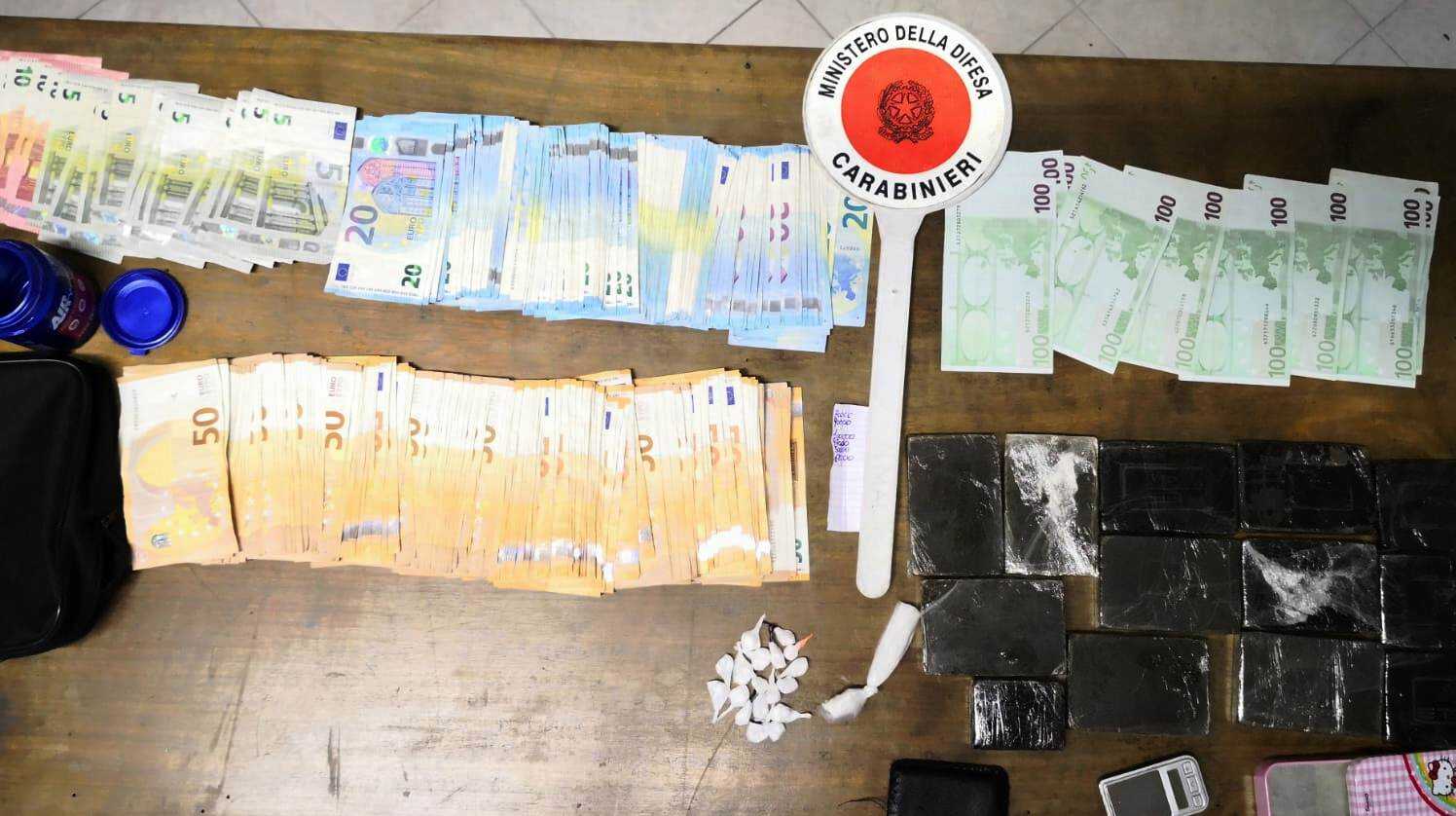 I carabinieri della stazione di Volla insieme a colleghi della sezione radiomobile di Torre del Greco hanno arrestato in flagranza due coniugi. I predetti, a seguito di perquisizione  domiciliare, sono stati trovati in possesso di 1236,5 grammi di hashish  suddivisi in 12 panetti, 11,2 grammi di cocaina in dosi e materiale per il confezionamento in dosi insieme a 12.605 euro ritenuti provento di attivita’illecita. l’uomo è stato tradotto a Poggioreale. La donna ai domiciliari.