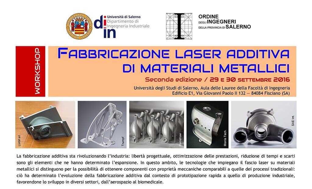 Il 29 e 30 settembre, presso l’aula delle lauree di Ingegneria, si terrà il Workshop “Fabbricazione laser additiva di materiali metallici” Coordinatore Scientifico Fabrizia Caiazzo Dipartimento di Ingegneria Industriale. La fabbricazione additiva sta rivoluzionando l’industria: libertà progettuale, ottimizzazione delle prestazioni, riduzione di tempi e scarti sono gli elementi che ne hanno determinato l’espansione. In questo ambito, le tecnologie che impiegano il fascio laser su materiali metallici si distinguono per la possibilità di ottenere componenti con proprietà meccaniche comparabili a quelle dei processi tradizionali: ciò ha determinato l’evoluzione della fabbricazione additiva dal contesto di prototipazione rapida a quello di produzione industriale, favorendone lo sviluppo in diversi settori, dall’aerospazio al biomedicale.