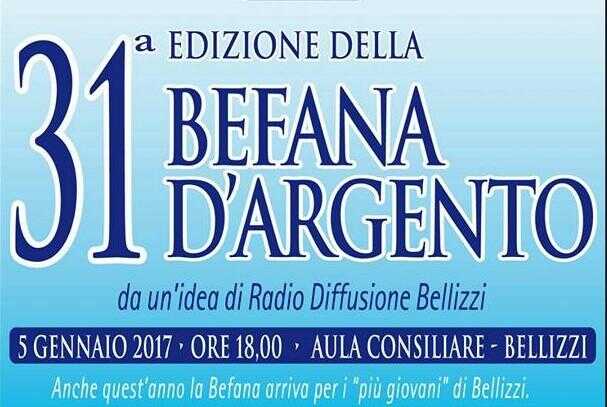 Da oltre trenta anni la tradizione si ripete. Il 5 gennaio alle ore 18.00, presso l’aula consiliare di Bellizzi, ritorna l’immancabile appuntamento con l’evento Befana d’Argento, giunto alla sua XXXI edizione e dedicato alla terza età. Durante la kermesse – presentata dal Gruppo ARP e dall’Associazione Reduci e Combattenti ed ideata nel 1986 dal sindaco Mimmo Volpe e da Radio Diffusione Bellizzi – i partecipanti assisteranno all’arrivo della Befana – con la consueta consegna di doni offerti dai commercianti della città – e al taglio della torta. Non mancherà uno spettacolo di musica e cabaret.